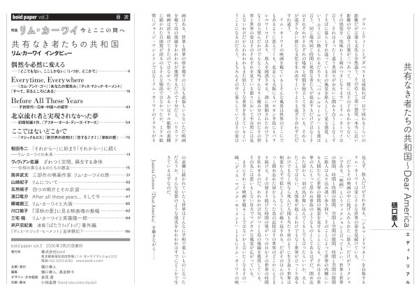 3月20日(金)発売となるboid paper vol.3 はリム・カーワイ監督特集号です。boidのウェブショップではご予約受付中です!